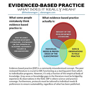 In fact, evidence based practice is mix of a few factors which are well encapsulated in the below explanation by Alan Aragon: